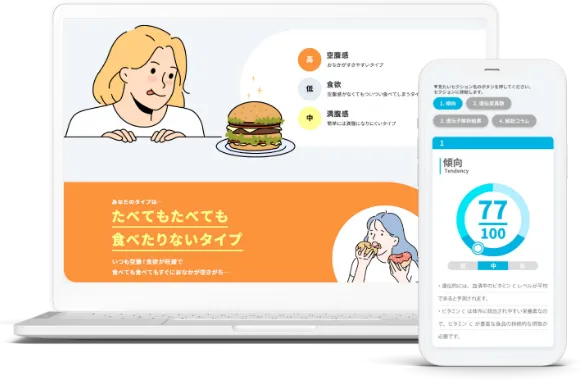 食欲が止まらないタイプ満腹感が遅れ、食べ過ぎや間食に傾きやすいです。脂質・糖質どちらでも”量”が増えがちになります。満腹感が遅れ、食べ過ぎや間食に傾きやすいです。脂質・糖質どちらでも”量”が増えがちになります。