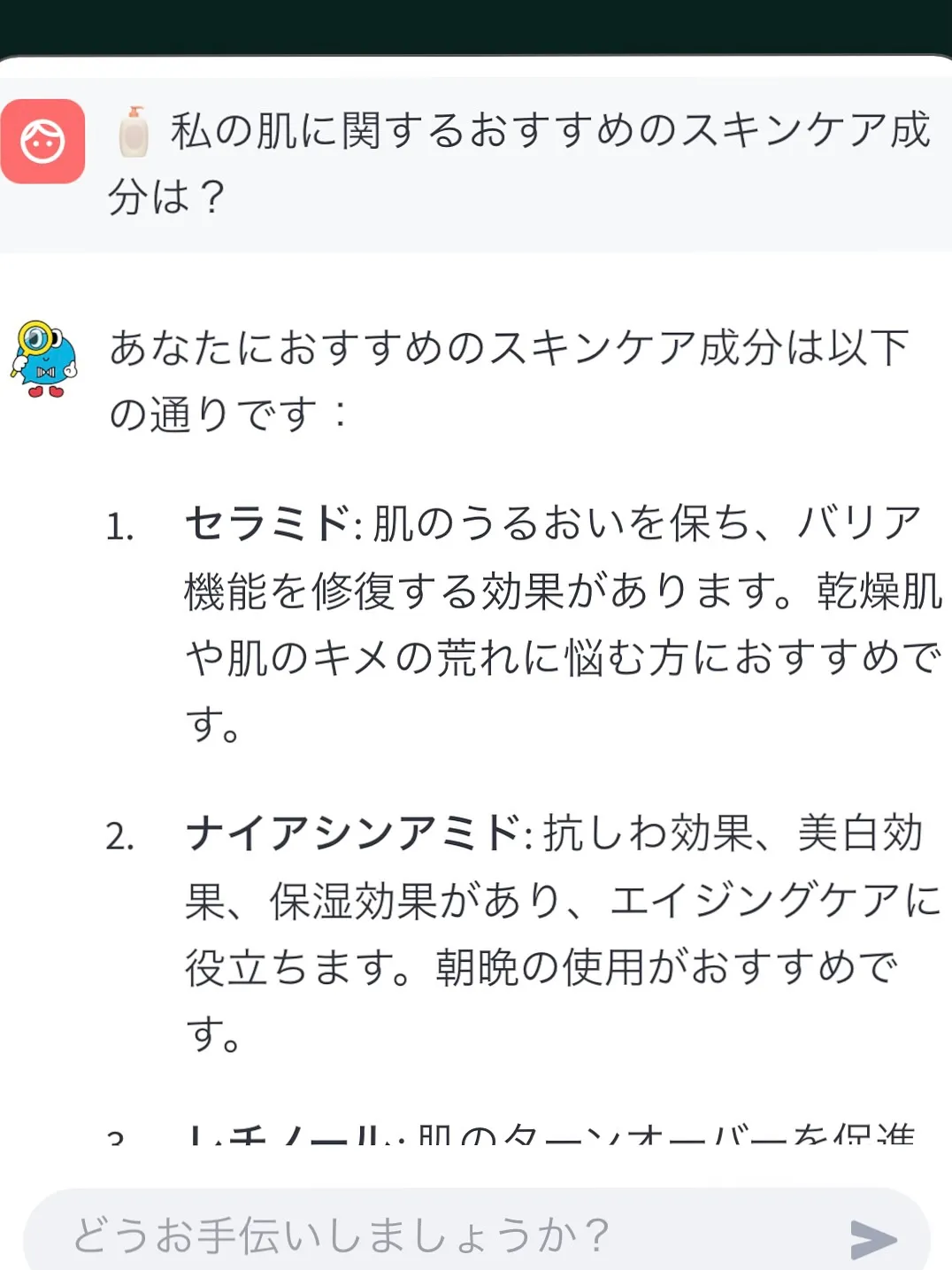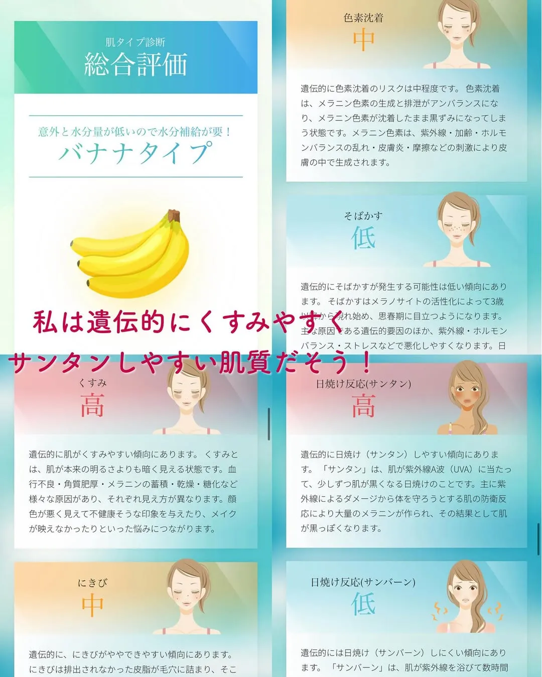 肌のトーン/にきび/髪質(直毛・ウェーブ・縮毛)/リバウンド